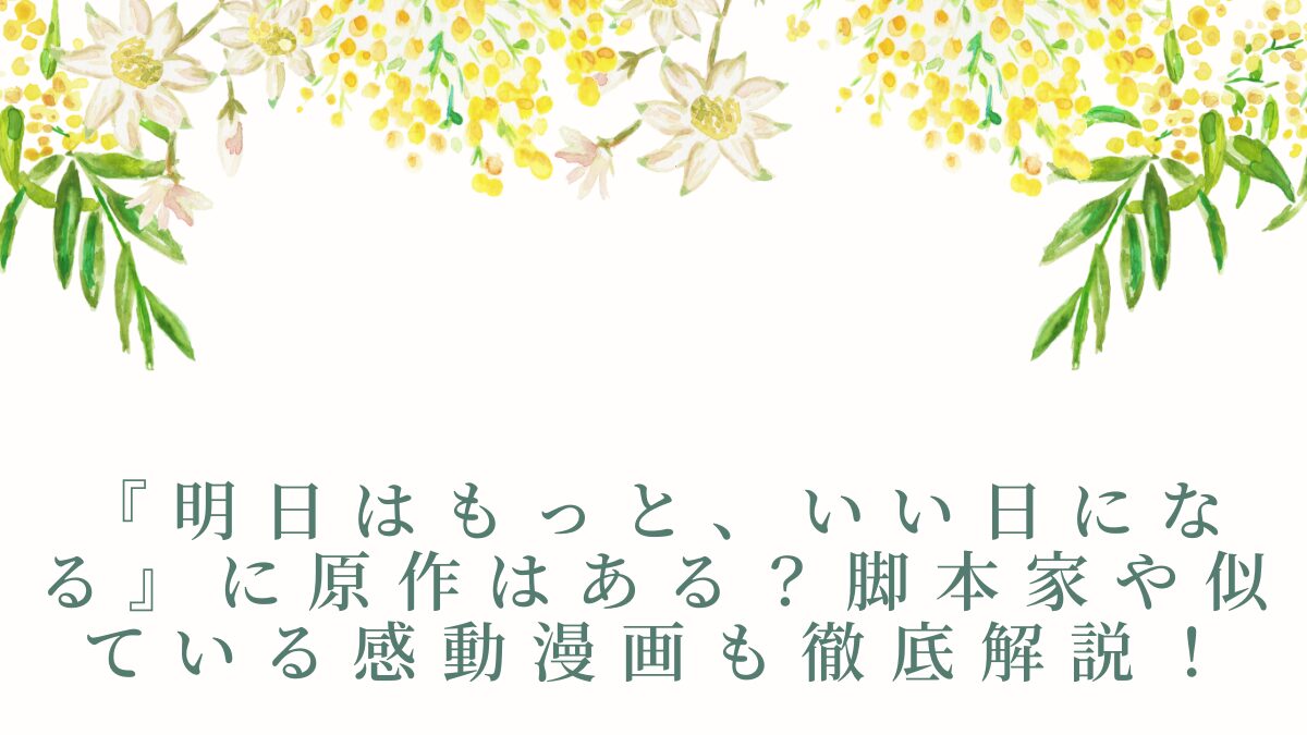 『明日はもっと、いい日になる』に原作はある?脚本家や似ている感動漫画も徹底解説!