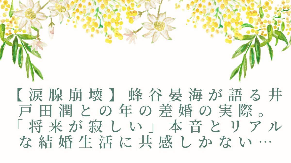 まず、みんなが一番知りたい結論から言っちゃうね!蜂谷さんと井戸田さんの年の差婚、そのリアルは、ただハッピーなだけじゃなかった…!😭