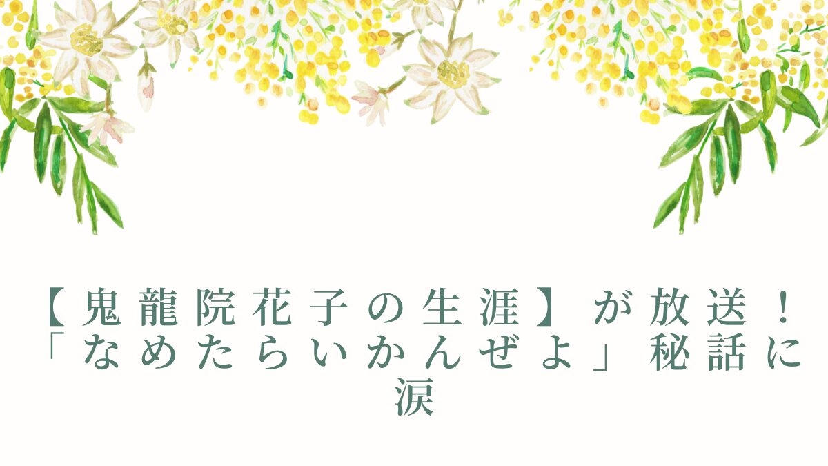【鬼龍院花子の生涯】が放送!「なめたらいかんぜよ」秘話に涙