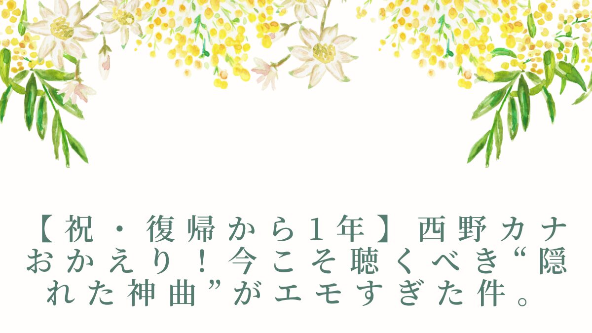 【祝・活動再開】おかえり、カナやん!新曲もいいけど“隠れた名曲”も聴き返さない?