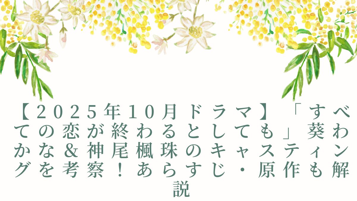 【2025年10月ドラマ】「すべての恋が終わるとしても」葵わかな&神尾楓珠のキャスティングを考察!あらすじ・原作も解説