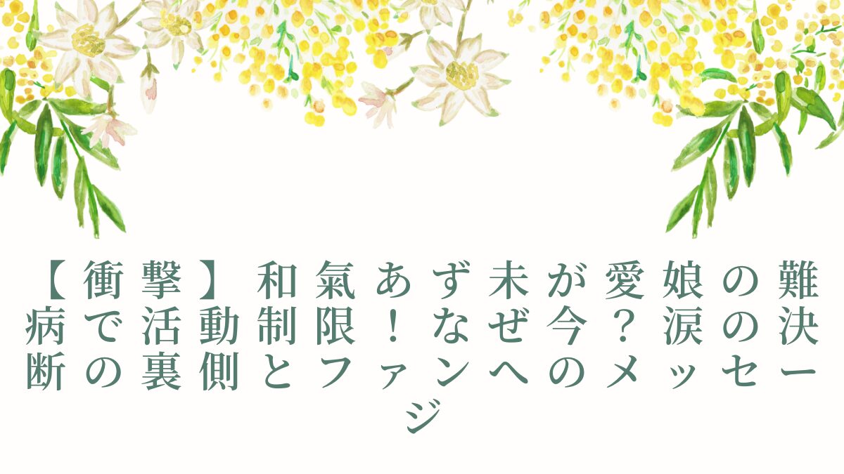 ただの速報ではない、このニュースの裏側に隠された和氣さんの「なぜ?」という疑問や、親としての計り知れない決断に迫りたいと思います。この記事を読めば、病気の詳細から、和氣さん一家が今、どんな状況に置かれているのか、そして私たちファンが何ができるのか、深く理解できるはずです✨
