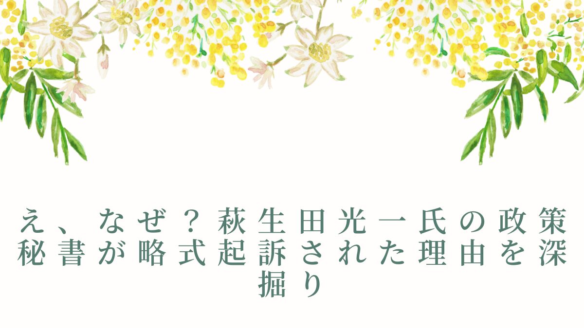 まさかのニュースにびっくり!😳 自民党の萩生田光一さんの政策秘書が略式起訴されたって、一体どういうことなんでしょう?