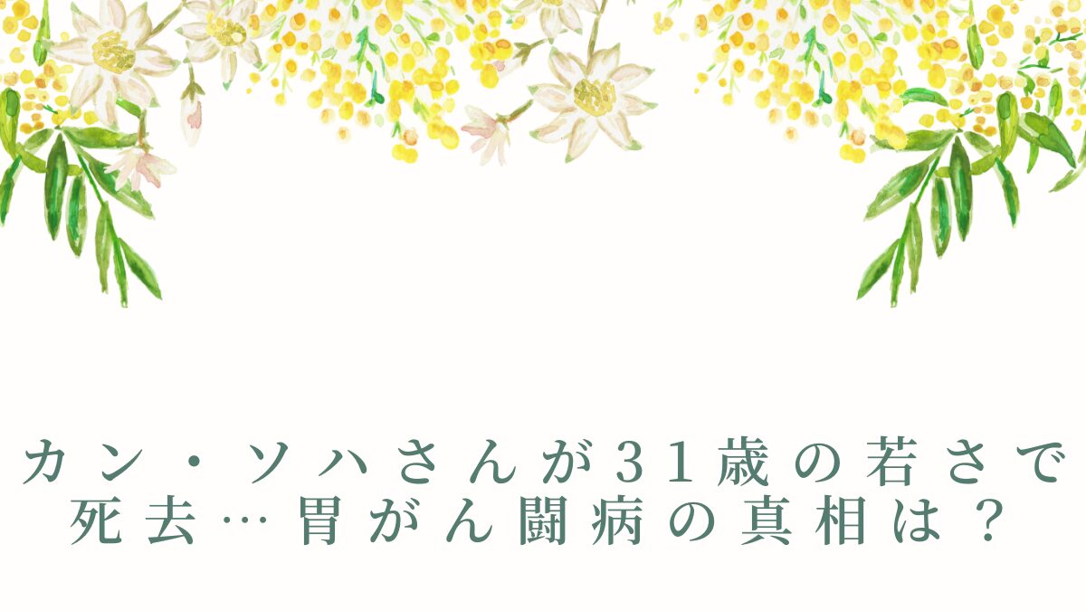 韓国女優のカン・ソハさんが、31歳というあまりにも若すぎる年齢で亡くなったという報道が入ってきましたね。胃がんを患っていたとのことですが、一体何があったのでしょうか?