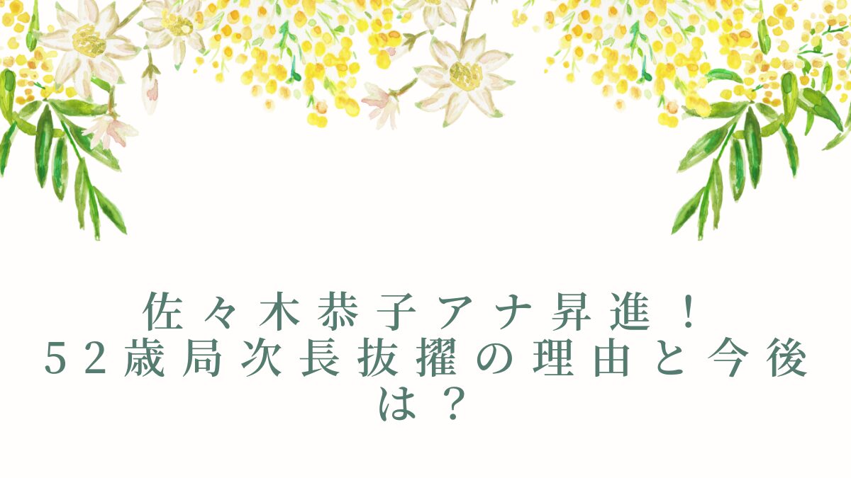佐々木恭子アナ、アナウンス局次長へ昇進!なぜこのタイミング?