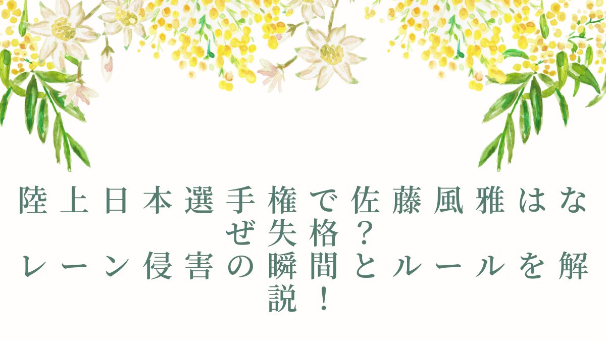 日本選手権の男子400m決勝、本当に劇的な展開でしたね😭佐藤風雅選手がトップでゴールしたのに、なぜ失格になってしまったのでしょうか?