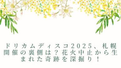 エンタメトレンド ドリカムディスコ2025、札幌開催の裏側は?花火中止から生まれた奇跡を深掘り! まさか…!札幌で予定されていたドリカム花火の中止というニュースに、私本当にびっくりしました😳 でもその直後に、代替イベントとして「ドリカムディスコ2025 in Zepp Sapporo」の開催が発表... 2025.08.15 エンタメトレンド芸能・エンタメ
