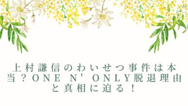 エンタメトレンド 上村謙信のわいせつ事件は本当?ONE N’ ONLY脱退理由と真相に迫る! まさか…!元ONE N' ONLYの上村謙信さんが、わいせつ行為で有罪判決を受けたなんて、衝撃のニュースですよね😳でも、これって一体どういうことなんでしょうか?この記事では、報道内容や判決の詳細、そし... 2025.08.13 エンタメトレンドニュース・時事