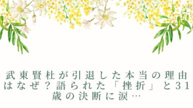 芸能・エンタメ 武東賢杜が引退した本当の理由はなぜ?語られた「挫折」と31歳の決断に涙…